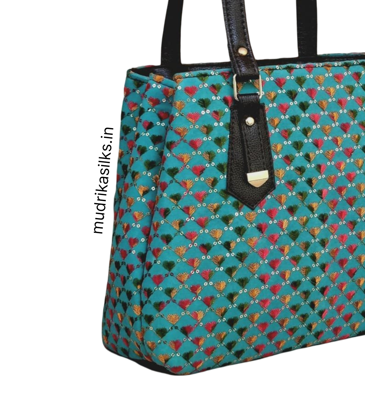 Aqua blue tote handbag with butti design