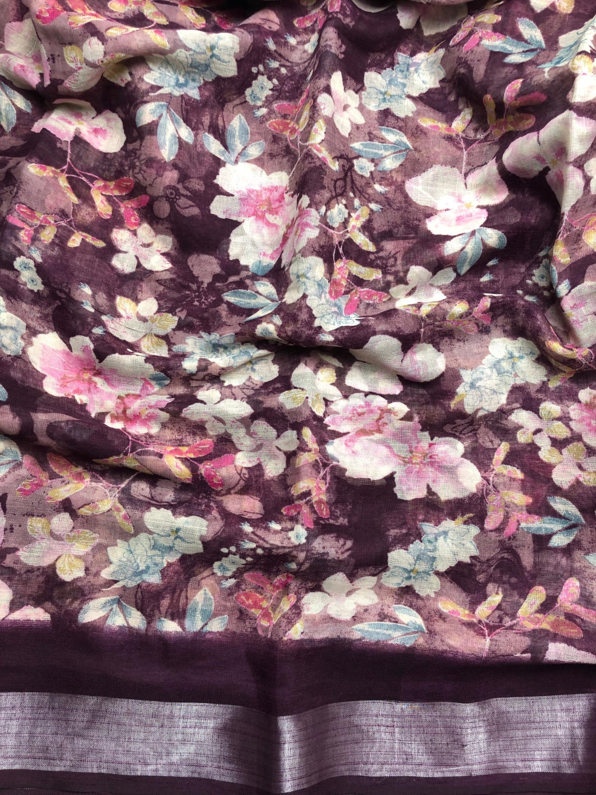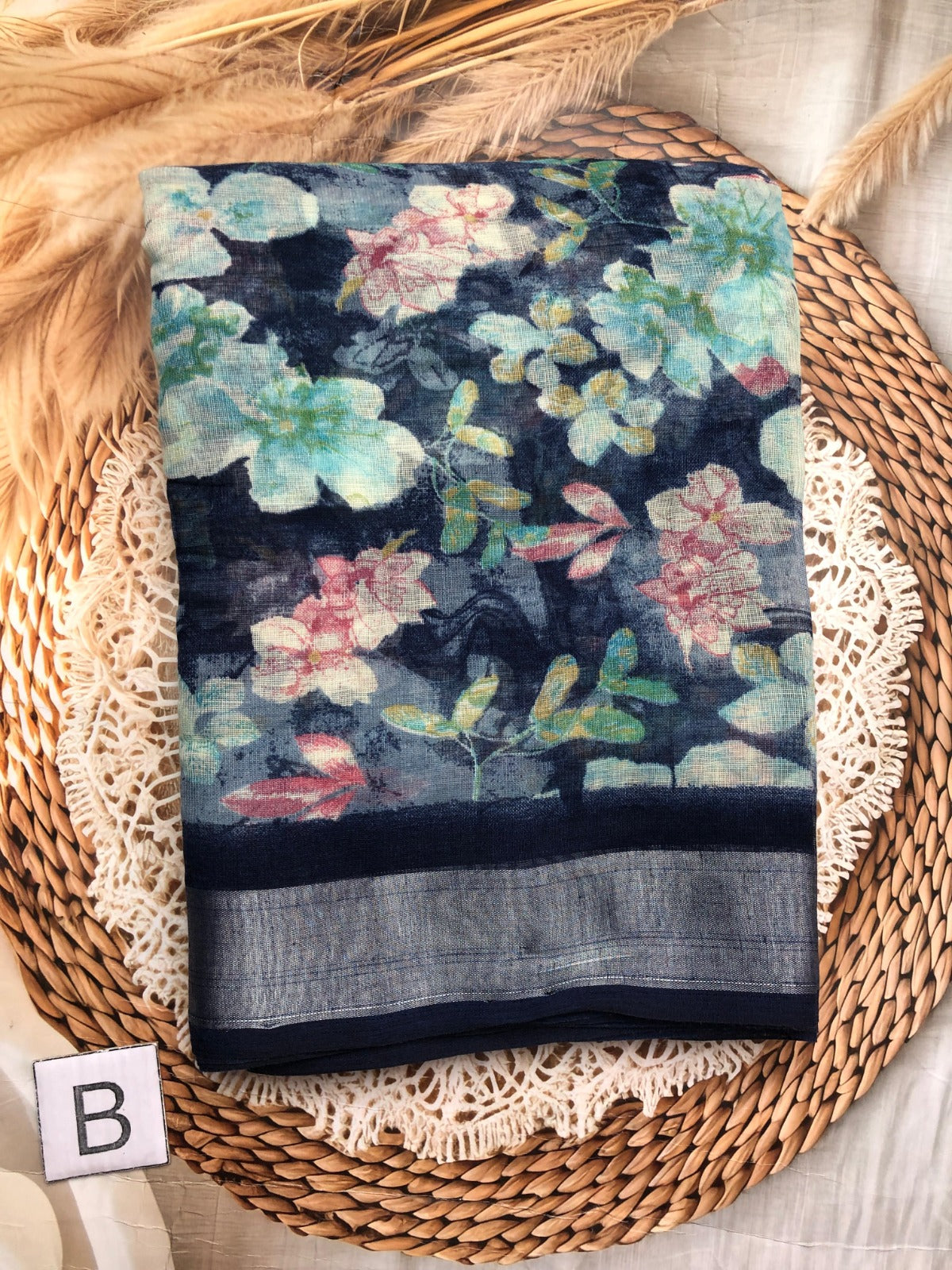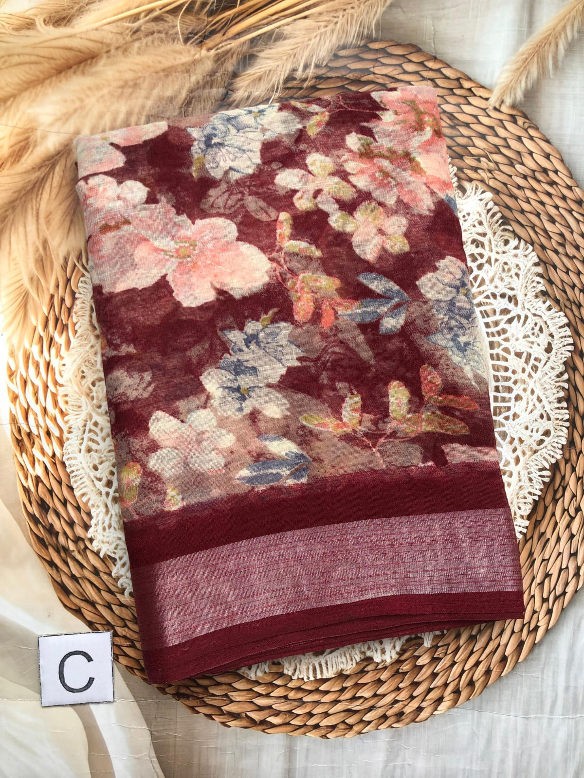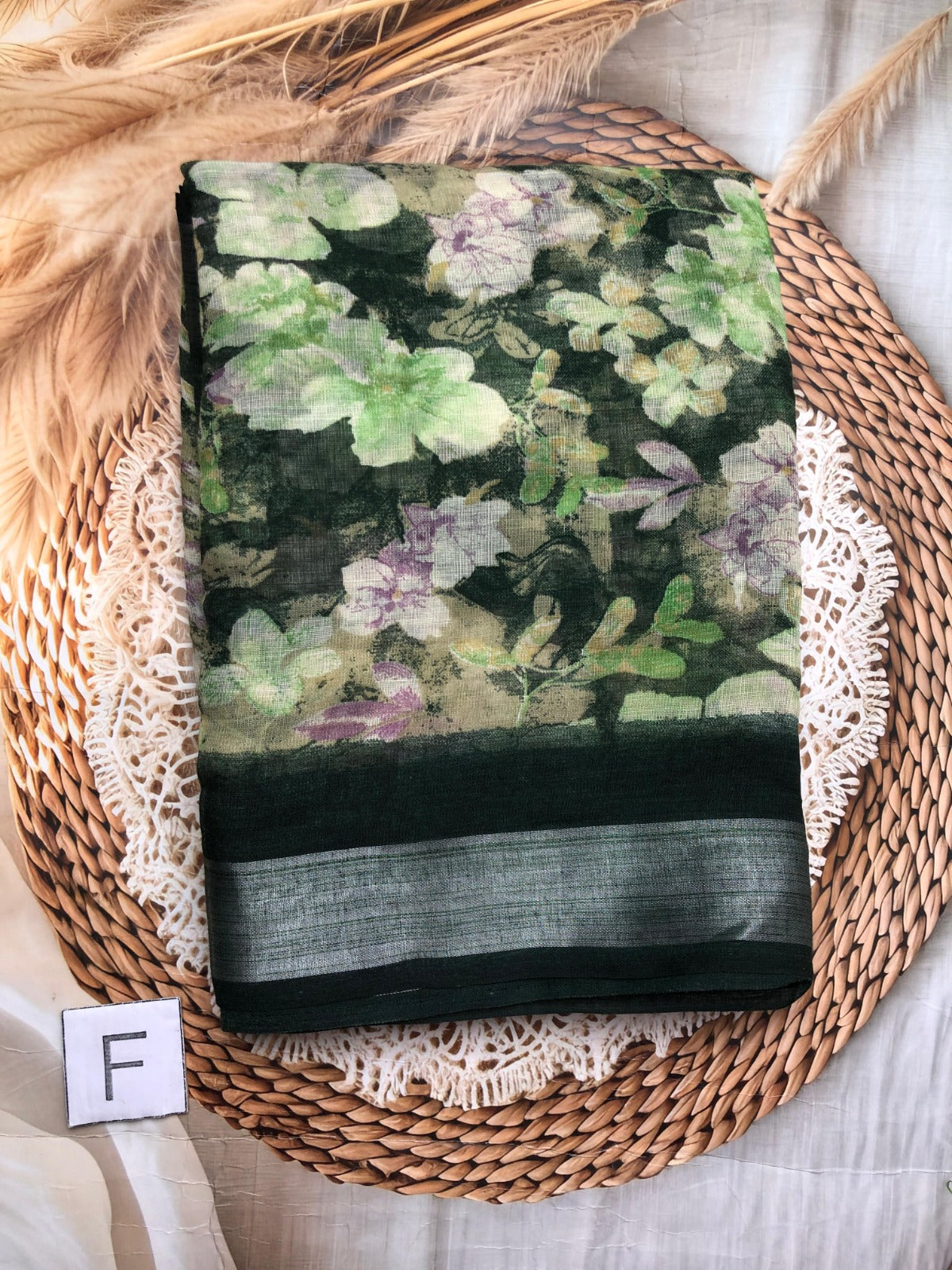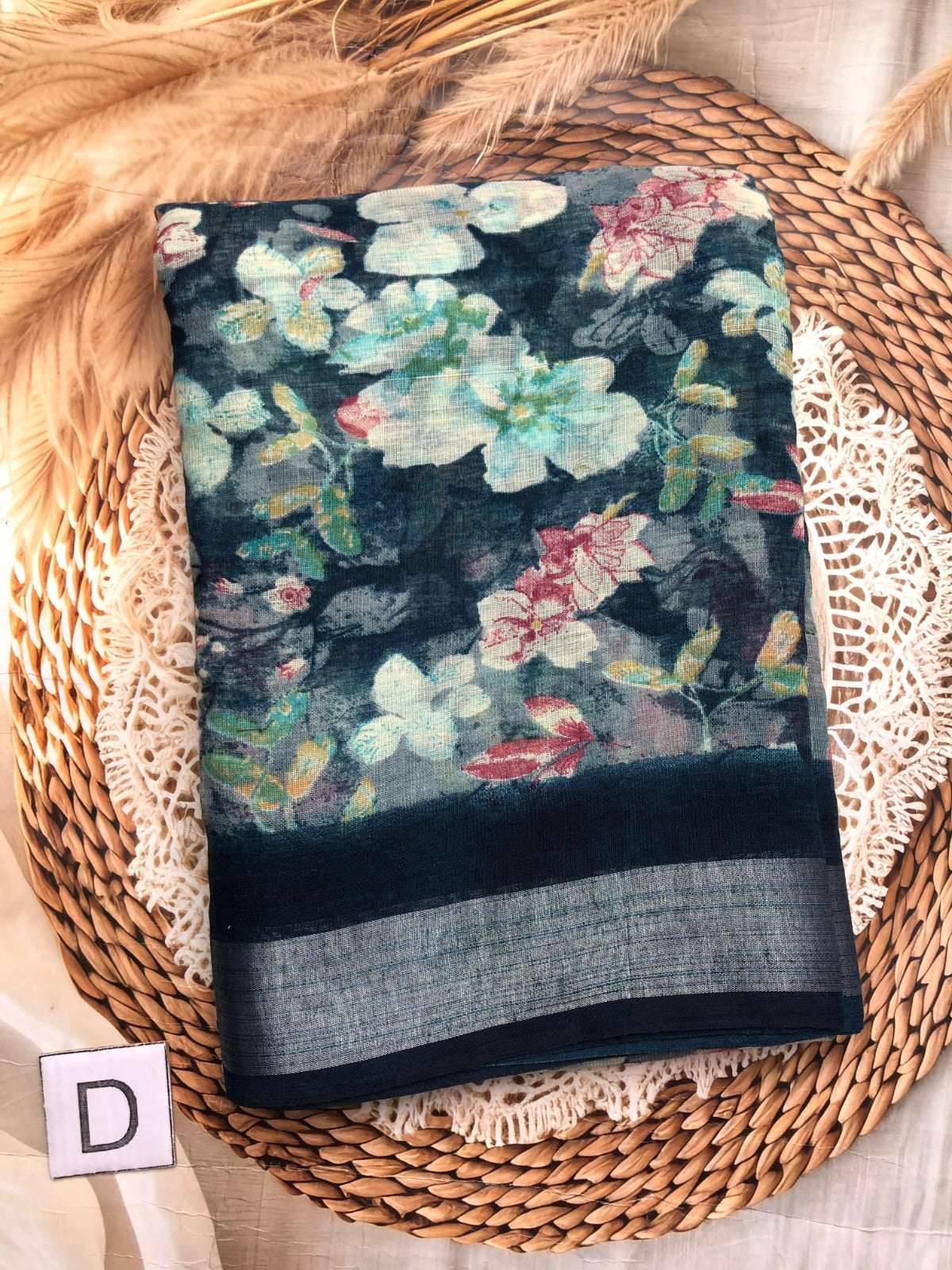 Elegant collection of Lenin saree with allover floral design blouse perfect for office wear and casual day. Colour may slightly vary due to photography lighting.